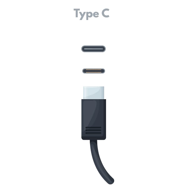 - USB-C: A modern universal connector with a compact design. Supports data transfer, charging and video and audio transmission. Thanks to its symmetrical shape, it can be connected in any direction.