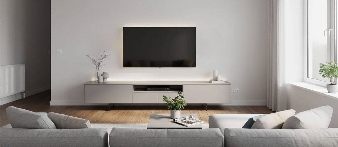 Mounting a TV on the wall is now standard in modern interiors, offering both functional and aesthetic benefits.
