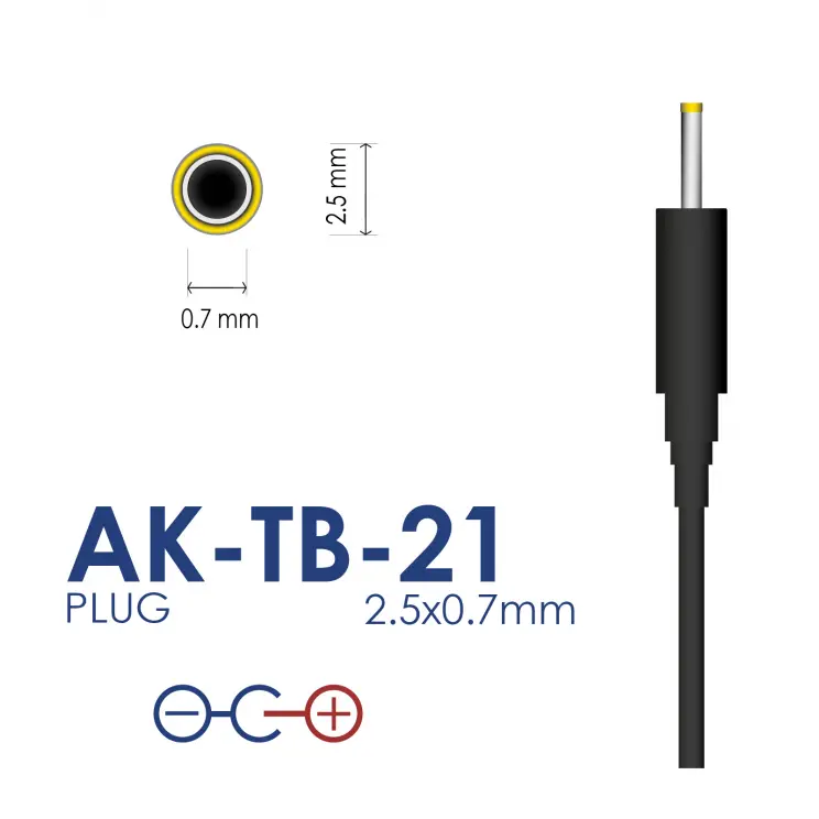 The Akyga® AK-TB-21 power supply unit is a versatile power source. It will easily charge various types of tablets, minicomputers and other mobile devices. It is characterized by a lightweight design, which allows you to comfortably use the connected device, also in the trajectory of its charging. The power supply provides a current of 5 V/2 A and 10 W, which has a positive impact on the speed of charging devices. What is more, a long 1.5 m cable terminated with a 2.5 x 0.7 mm plug will ensure freedom of movement during use.