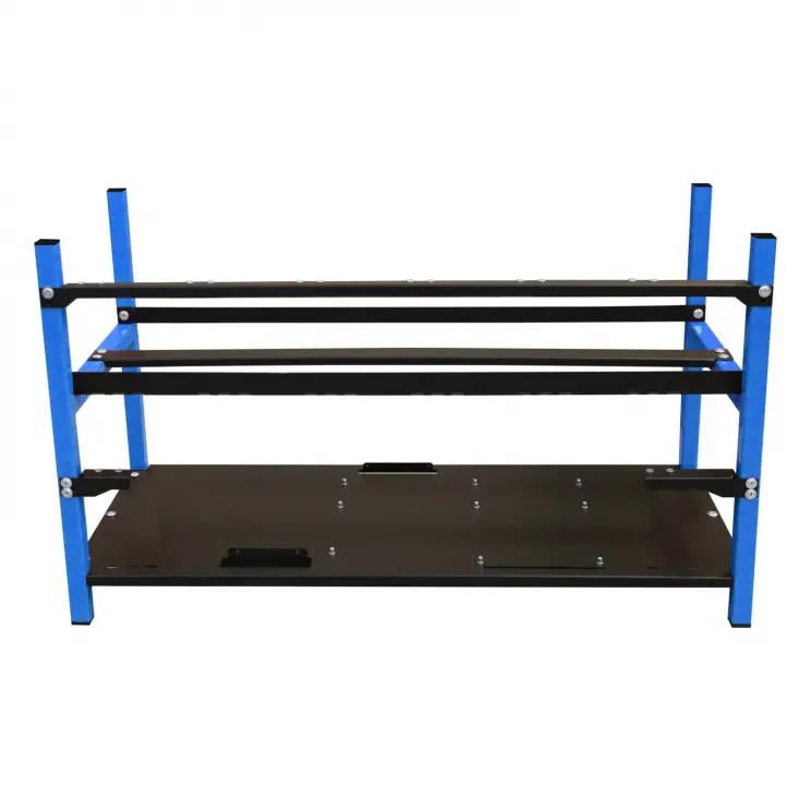 Akyga® AKM082 mining rig frame is an optimized version of the AKM081 model. The new, revised construction makes its assembly much simpler. On the other hand, the rig frame is noticeably smaller, which makes it more adjustable. What’s more, the product provides place for up to 8 large graphics cards with their own cooling system. The space requires for the installation of additional fans can thus be omitted. Nevertheless, the frame ensures a free air flow and thus provides excellent cooling for mounted components. Another advantage is that the cables form power supply can be shorter. Thus, there is no need to for extension power cables for the graphics cards.