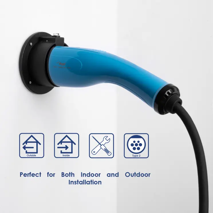 The Akyga® AK-SC-E01 wall mount is a practical addition to the electric car charging kit with Type 2 (IEC62169-2) connector. The accessory will not only help to keep things tidy next to the parking space, but it will also make putting a rubber cover on the connector unnecessary. Not every wallbox has a hanger that allows you to hang the plug after the vehicle has finished charging. Therefore, it is worth equipping yourself with a handy holder, which can be attached anywhere next to the charger. What's more, the holder has a safety feature that prevents the plug from being unplugged unintentionally. The built-in latch releases with the push of a button, so holding the plug in the holder protects it from accidental impact and damage, so it will last longer.