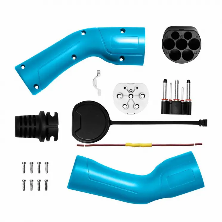 The Akyga® AK-SC-E03 plug has a Type 2 (IEC62169-2) male connector also known as Mennekes. This is the most popular type of connector on the European Electric Vehicle market. It is used to connect the cable to the EVSE charging station. The old connector is worn out and no longer suitable for anything? No problem! Use this accessory to replace the damaged plug or to assemble your own electric vehicle charging cable. The high quality construction guarantees resistance to drops and pressure. What's more, the silver-plated connectors with increased resistance allow the plug to carry a current of 32 A. This makes it possible to use it in both single-phase installations.
