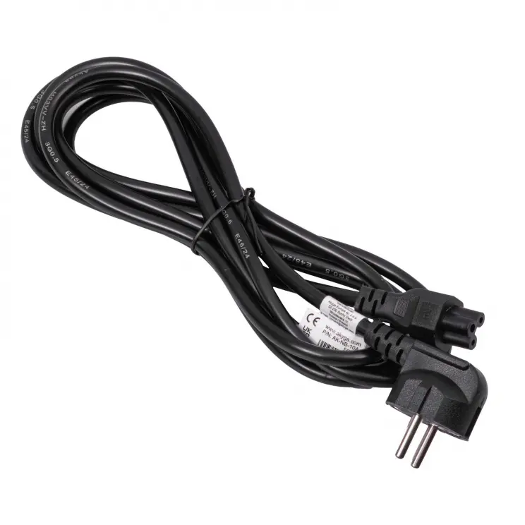 Akyga® AK-NB-10C is a professional 3 m long “cloverleaf” power cable. It is equipped with IEC C5 and CEE 7/7 connectors and a high-quality cable with copper conductors, which guarantees reliable and safe power supply for laptops, portable projectors, office equipment and audio/video equipment. Thanks to its standard connectors, the cloverleaf power cable is universal and suitable for home and office use throughout Europe.