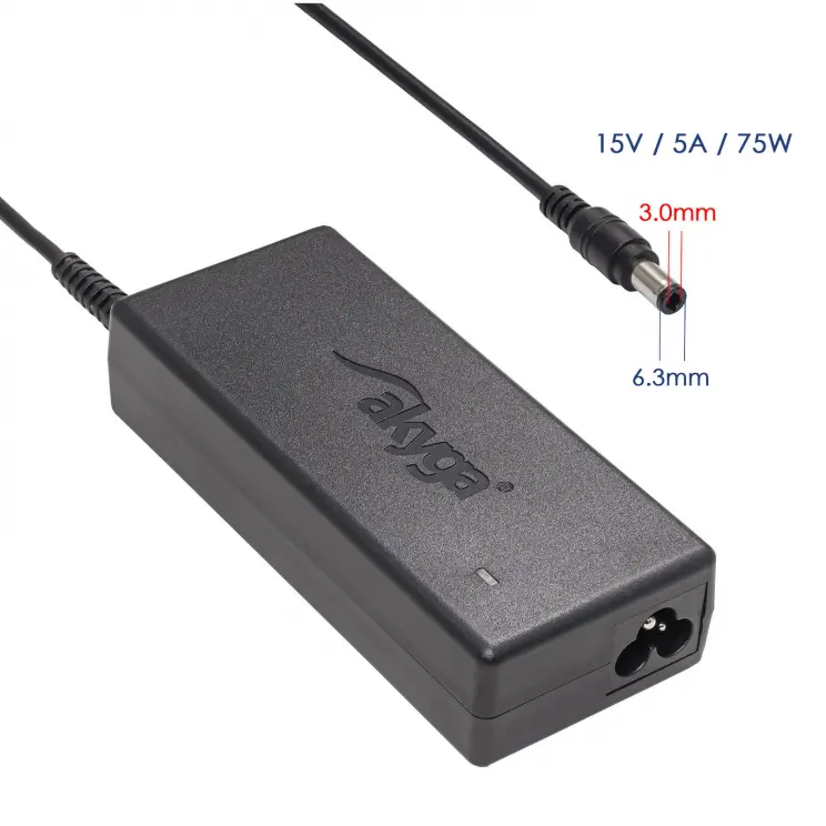 Akyga® AK-ND-14 is a notebook dedicated power supply for devices powered with 15V/5A, 75W power and 6.3*3.0 mm plug.