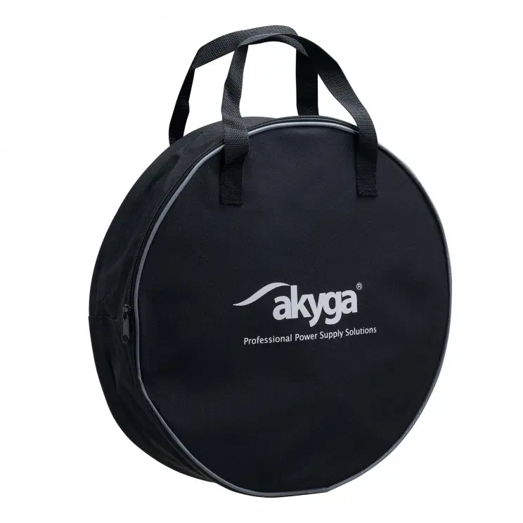 Durable EV cable carry case AK-AC-02 for electric car charging cables made by Akyga®. It helps to keep clean and ensures the safety of the EV charger cables and control modules. The large, round shape of the bag makes it easy to keep things tidy in the boot. At the same time, the dimensions of the cover guarantee enough space for various models of electric vehicle supply equipments - EVSE.